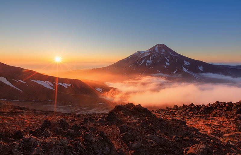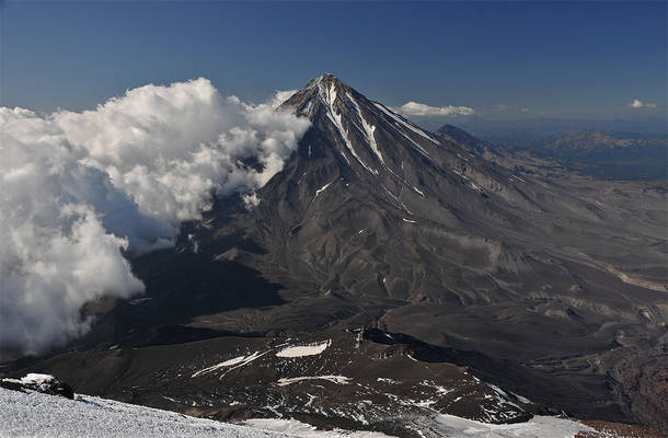 Авачинский вулкан (2741 м) расположен в 30 км от г.Петропавловска-Камчатского. Это «двойной» вулкан. Его своеобразное строение объясняется тем, что современный действующий конус сформировался внутри более древнего и сильно разрушенного кратера, называемого сомма. Эксцентрично расположенный молодой конус возвышается над кромкой соммы на 400-1000 м. Он венчается кратером, имеющим диаметр около 350 м.